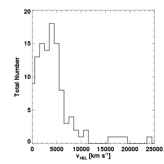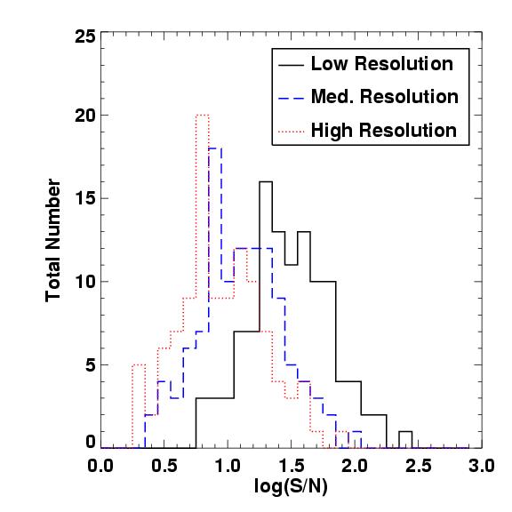 Histogram showing the average signal-to-noise distribution for the observed galaxies.