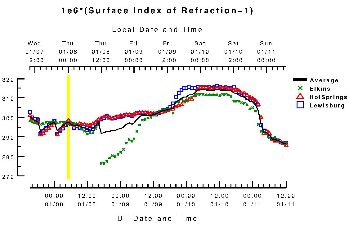 SkewT 1e6*(N-1) vs. Hght calculated for 2026 Jan 07 06:00 UT