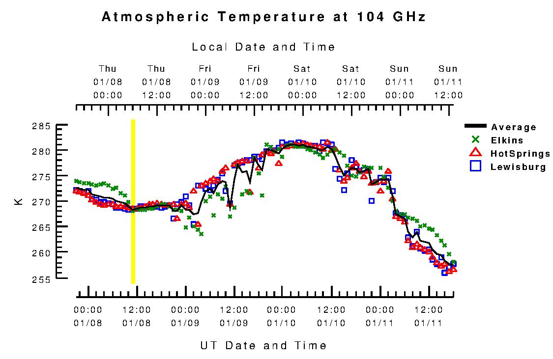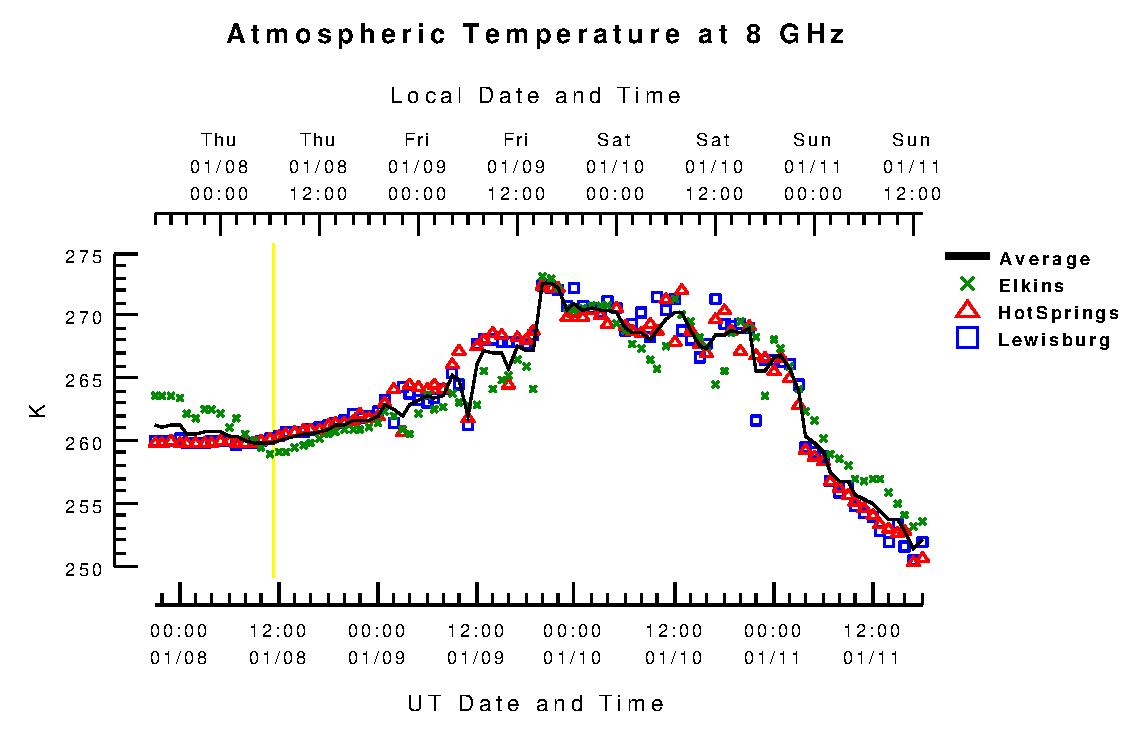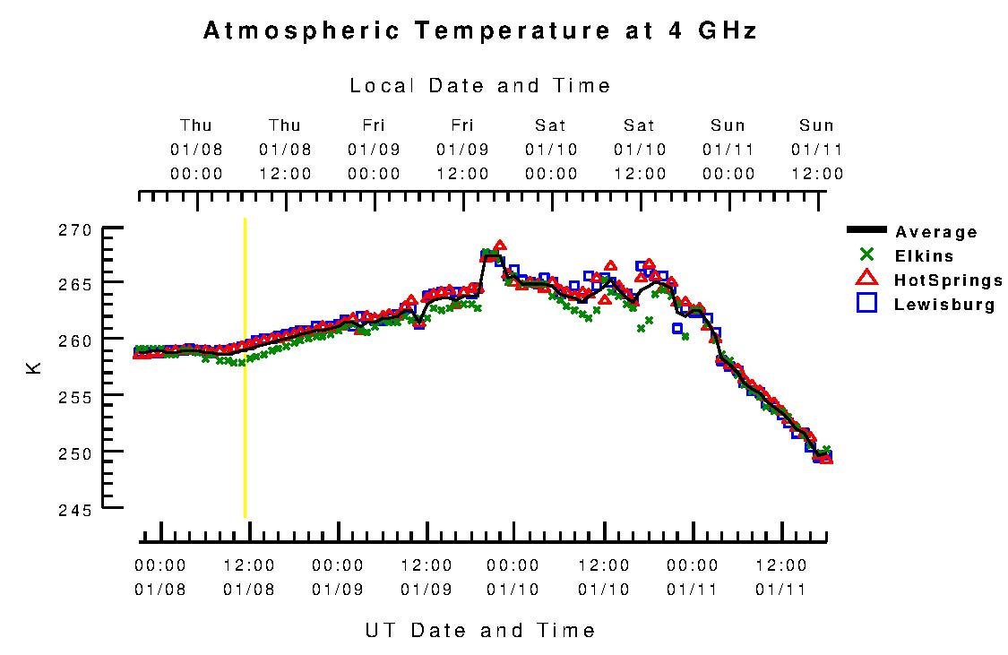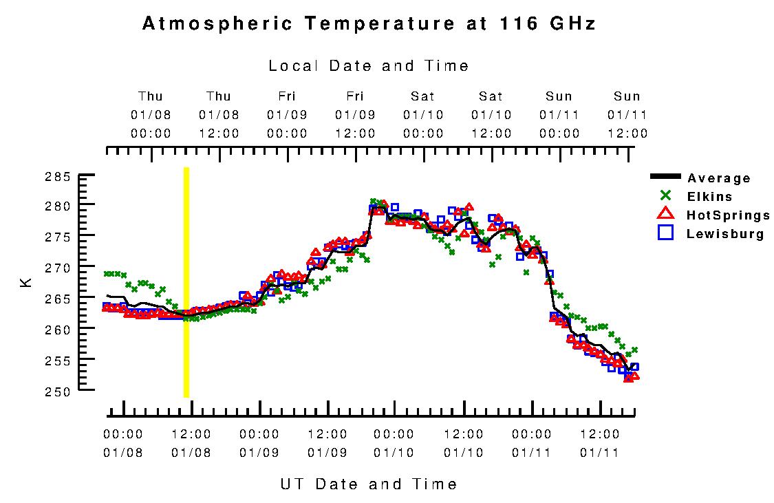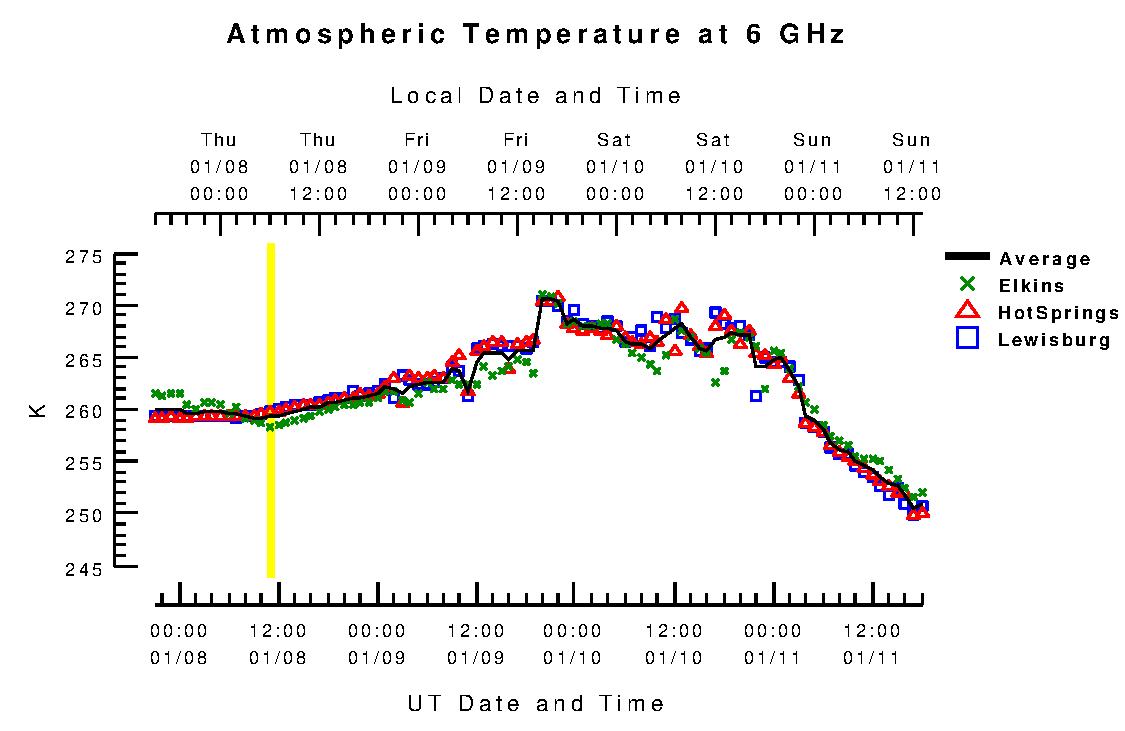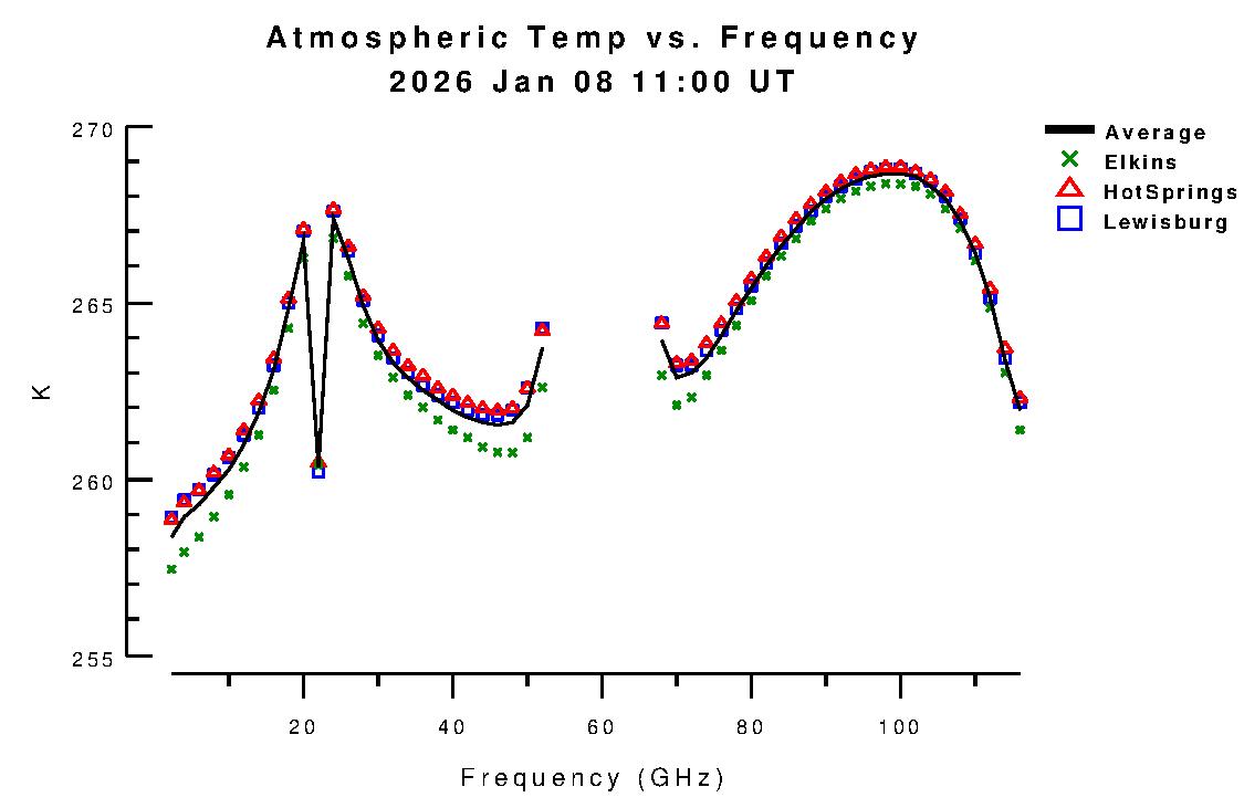 Atmospheric Temp vs. Frequency calculated for 2026 Jan 07 06:00 UT