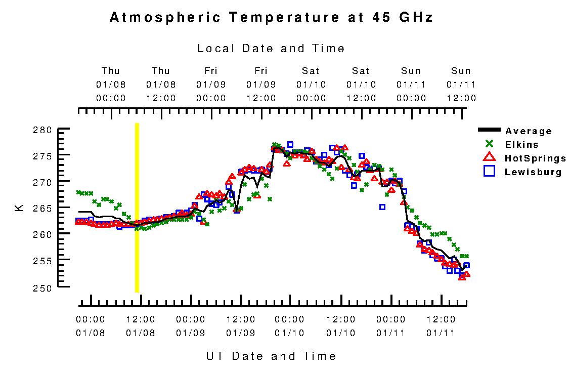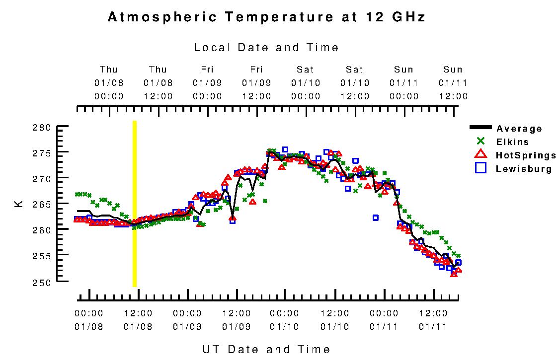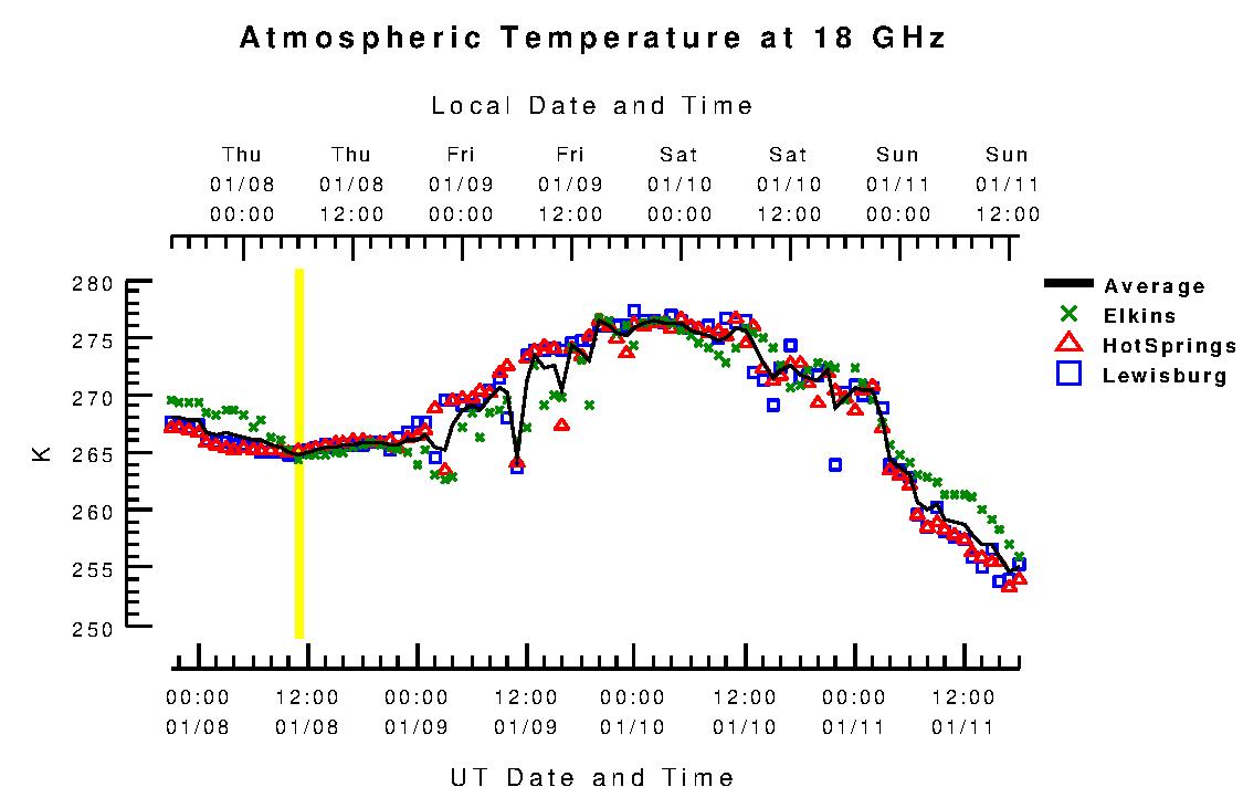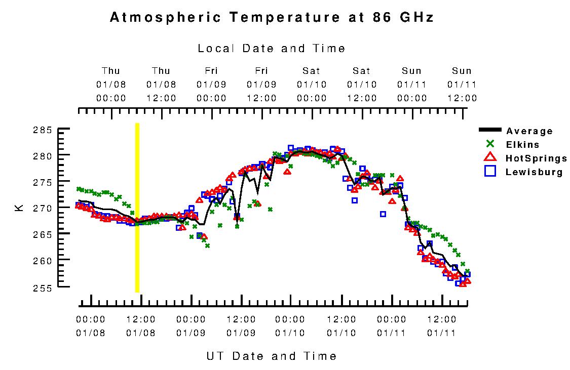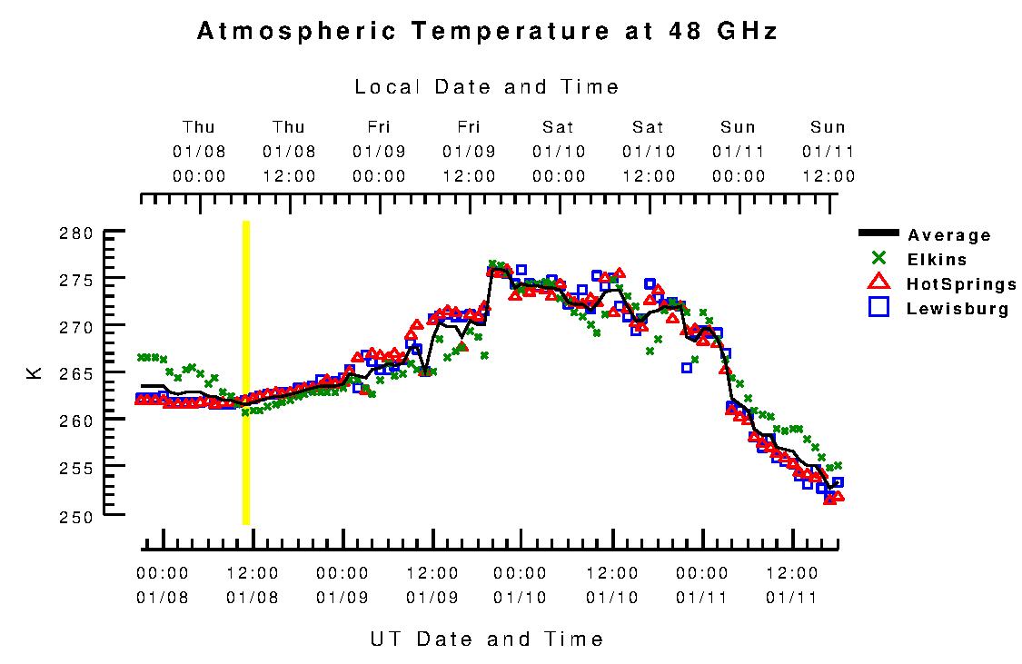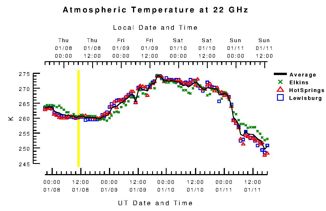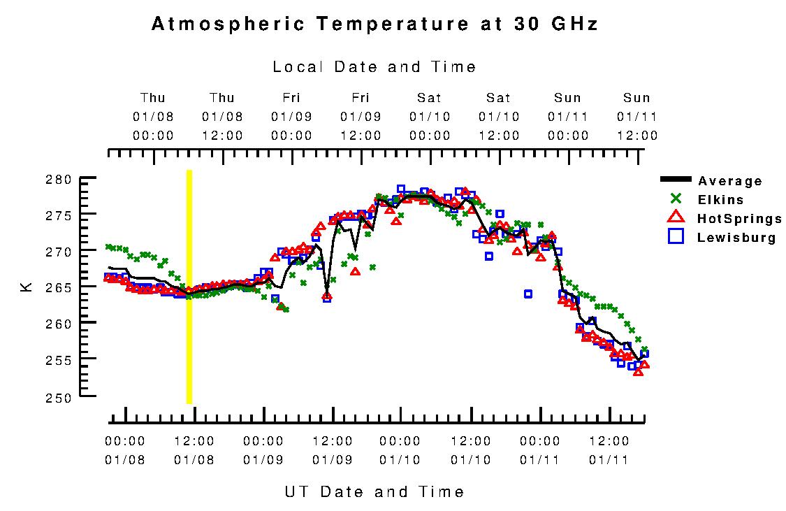 Atmospheric Temp vs. Frequency calculated for 2026 Jan 07 06:00 UT