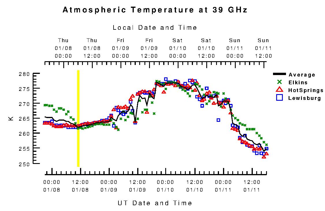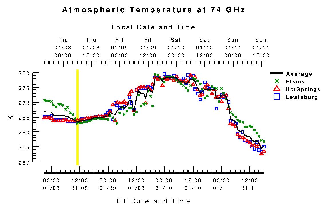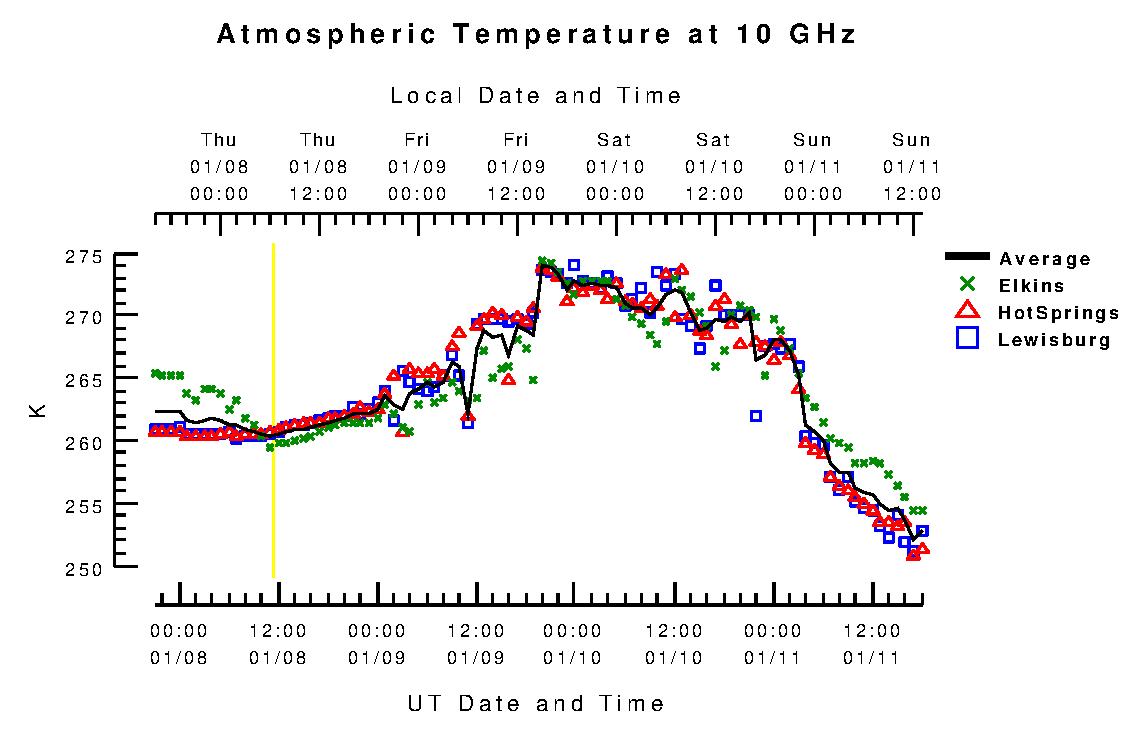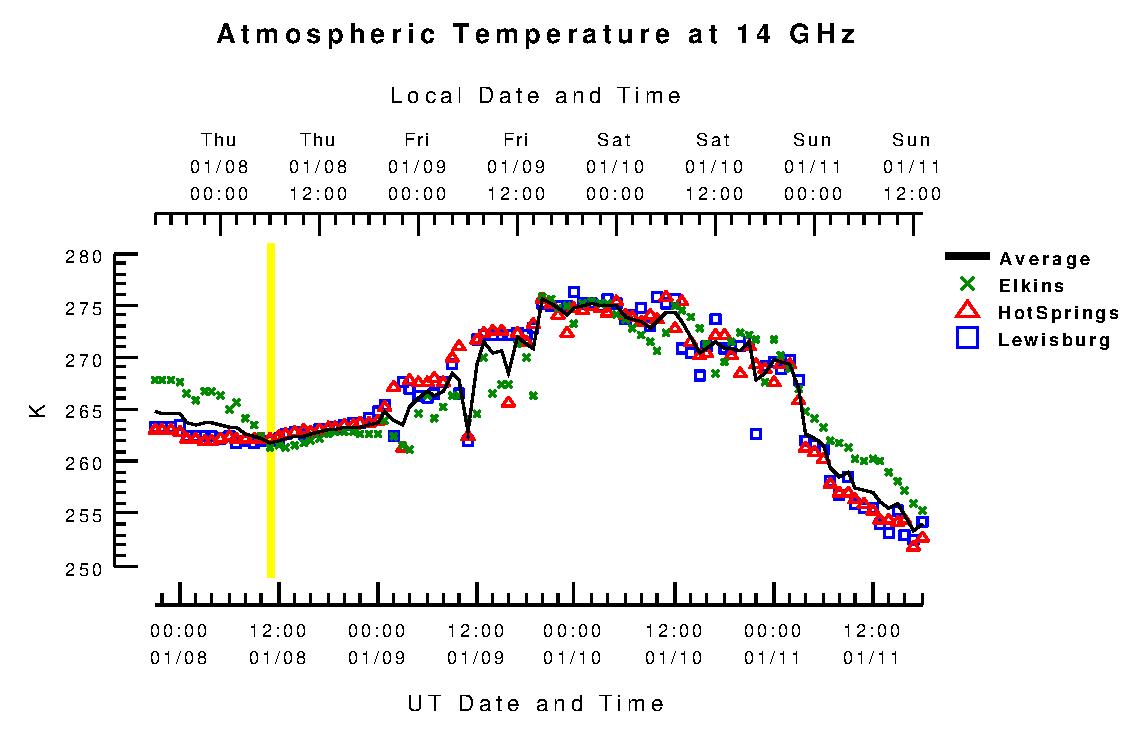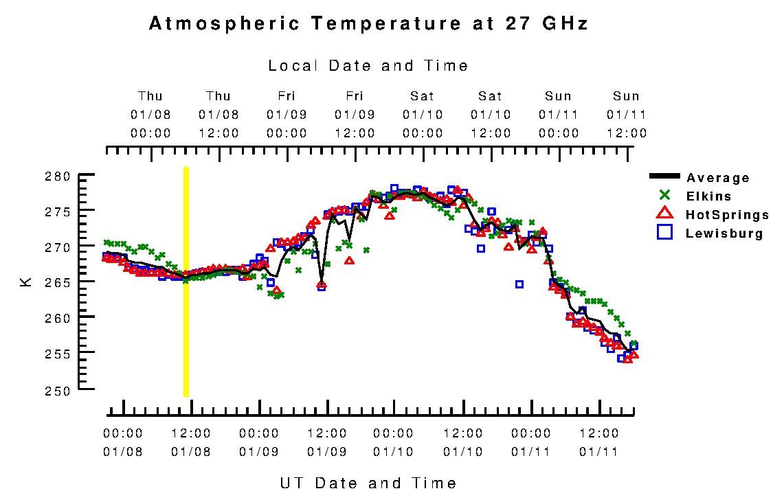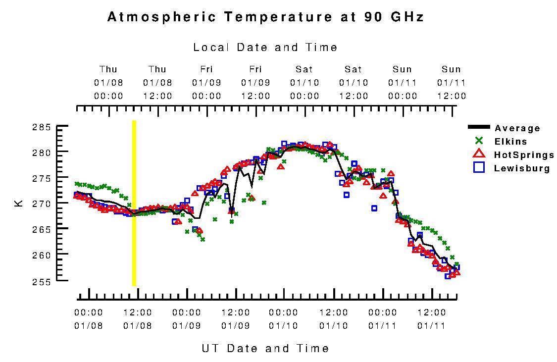 Atmospheric Temp vs. Frequency calculated for 2026 Jan 07 06:00 UT